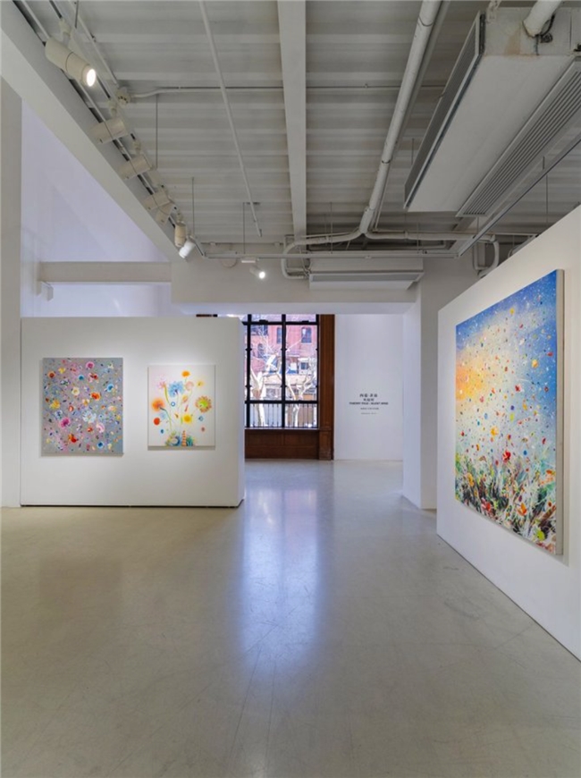 本次个展「西瑞·菲兹:风起时」呈现艺术家的近期新作与经典系列:《春之颂·埃斯特雷尔》(Primavera Esterel),以湿笔画技法致敬波提切利的名作《春》。在橘黄渐层与朦胧笔触间,虚幻的缤纷花朵映衬着游移的色彩光晕,仿若自然与梦境激荡出的浪漫旋律。《微风·全景》(Silent Winds Opus Panorama)作为经典系列,记录了风吹拂过田野的时刻,花草漫天飞舞,定格生命万物随微风吹起的美好瞬间。《银色图谱·珊瑚》(Silver Winds Corail))与《金色图谱》(Golden Atlas)以金银绚丽的色系,在串串移动、纷飞的灿烂花瓣间,勾勒出盛世的繁华与生命力。