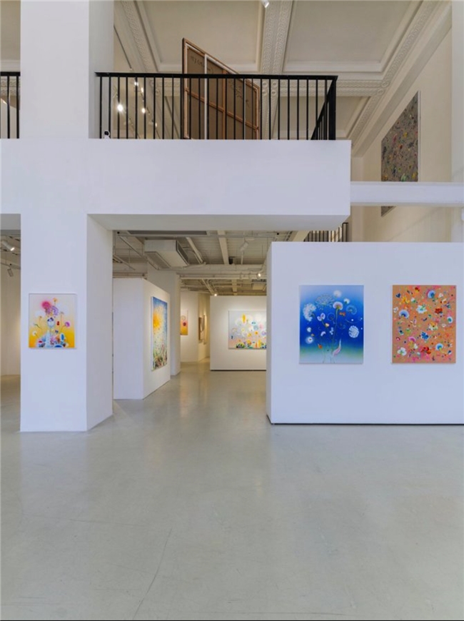 菲兹的艺术理念,是对十九世纪浪漫主义精神的当代回应与转化。不同于传统浪漫主义大师以险峻的高山大海反衬人类的渺小,菲兹透过微观与宏观的模糊重塑了当代的崇高感。画布上的有机体既似显微镜下的细胞分裂,又如望远镜里的星系爆炸,这种科学与诗意的结合,揭示了生命起源的神秘力量。他笔下的花朵与藤蔓并非植物学的写实纪录,而是情绪的载体,构成了一幅幅内在风景。那些高饱和度的色彩,并非自然界的物理色泽,而是经过记忆与情感滤镜处理后的心理显影。这种对时间的凝视在展览「风起时」中达到极致:风虽无形,但当它吹散花瓣的那一秒,正是生命力最旺盛也最脆弱的时刻。