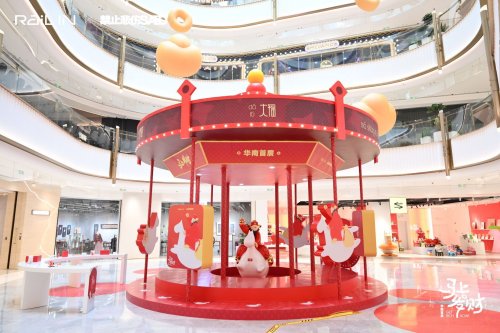 走进中庭,巨大的旋转木马式许愿装置格外吸睛,转出新年好运气!